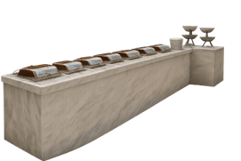تتميز بوفية سخن بقرصة مصنوعة من رخام الكرارة الفاخر، الذي يمنح مظهرًا راقيًا وسطحًا عمليًا سهل التنظيف، مع قدرة عالية على التحمل. كما تم تجهيز بوفية سخن بعدد 7 شيفنج ديش مستطيل بلت إن، ما يتيح تنظيم الأصناف الساخنة بشكل احترافي ويساعد على سرعة الخدمة وزيادة كفاءة التشغيل.